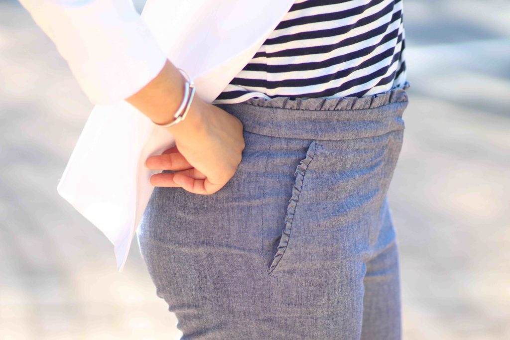 Woah, woah, woah can we talk about those pants?!??! Those are DARLING, holy cats! The ruffle detail is SO CUTE!