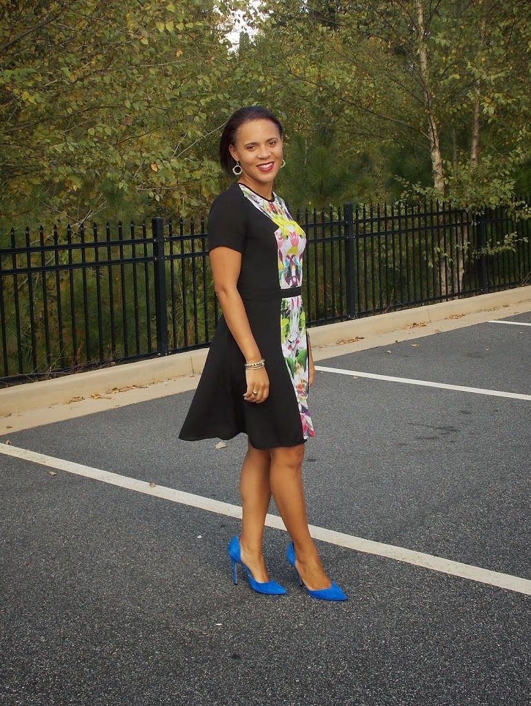 When I found out that one of my favorite local bloggers was hosting an event at the Rebecca Taylor store, I initially struggled with finding the right outfit that would be appropriate for work and for the party. After over-thinking it (which I often do…), I grabbed one of my favorite dresses. For me, a dress is generally one of the best options if I have plans after work as I don’t look overdressed, just nice. I love the floral print of this dress and never miss a chance to wear my blue suede shoes :). I normally keep my make-up neutral at work, but I added the burgundy lip after work. It is one of my favorite looks for fall and an easy way to amp up any work look.