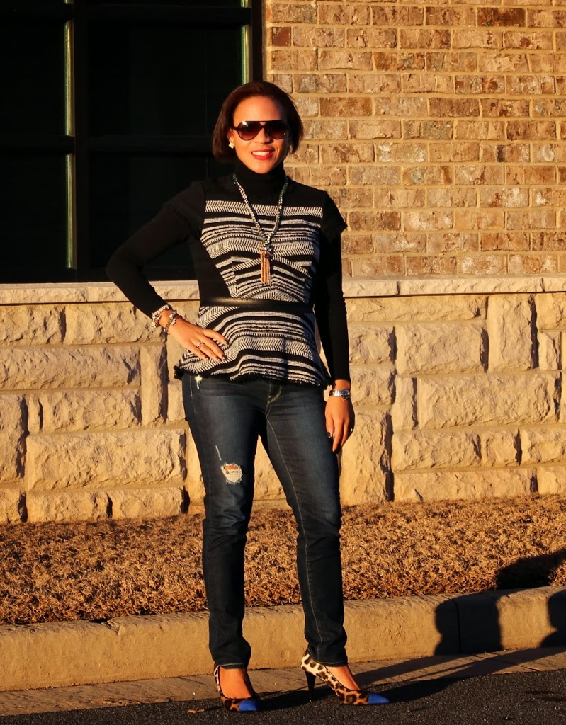 Everyone knows I love a great sale, and after Christmas is one of my favorite sales.  I always get the best deals during that time.  I picked up these shoes and this top after Christmas.  I’ve loved these shoes since seeing them on Blair of the amazing blog, Atlantic-Pacific.  I was so excited to find them in a lower heel since GZ heels don’t fit my feet as well as some other brands.  I’m willing to suffer a little for these heels though!  And this top first caught my eye while I was in the Rebecca Taylor store, but I couldn’t justify paying full price for it and hoped to find it on sale.  Finding it at the Saks after Christmas was a sign it was meant to be!