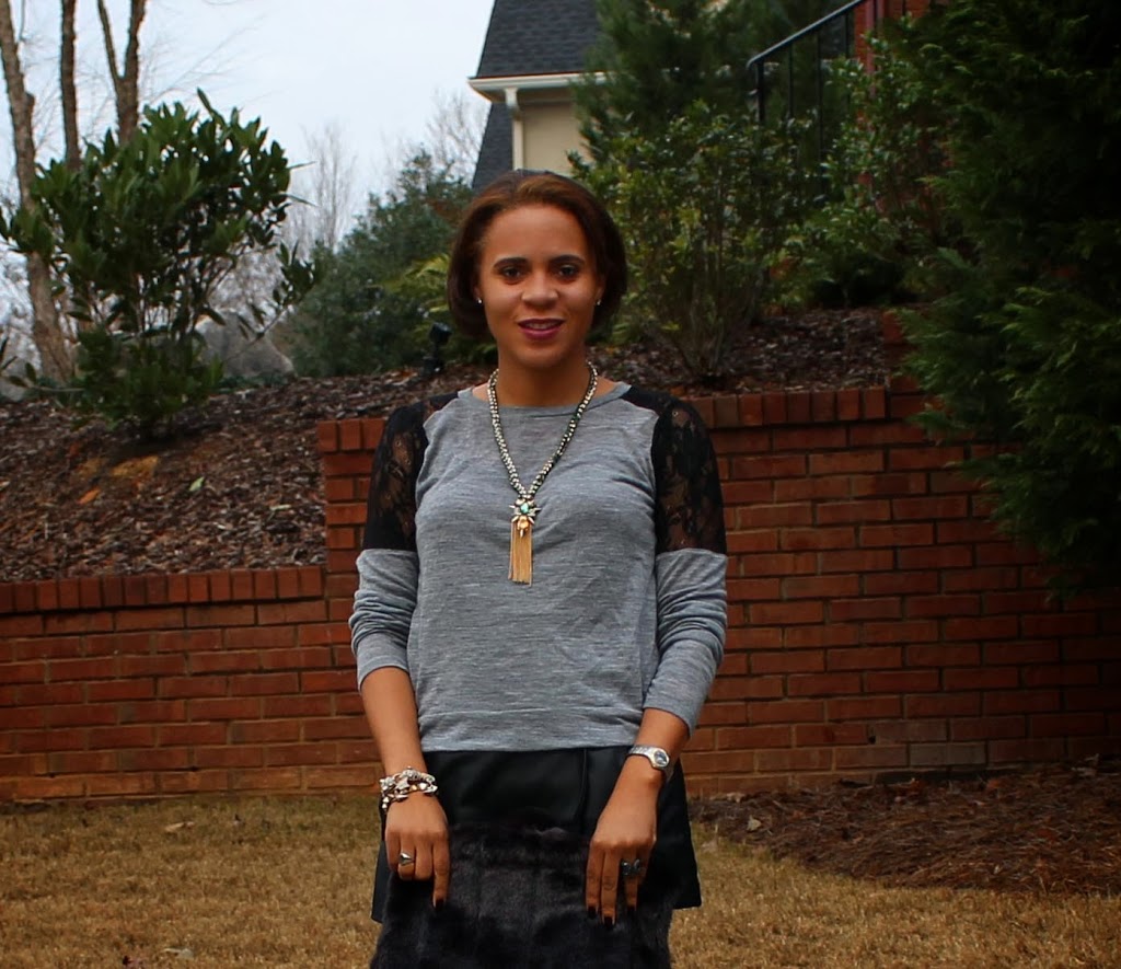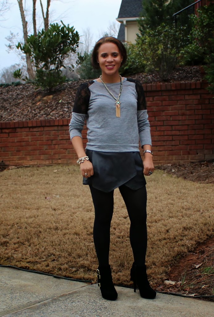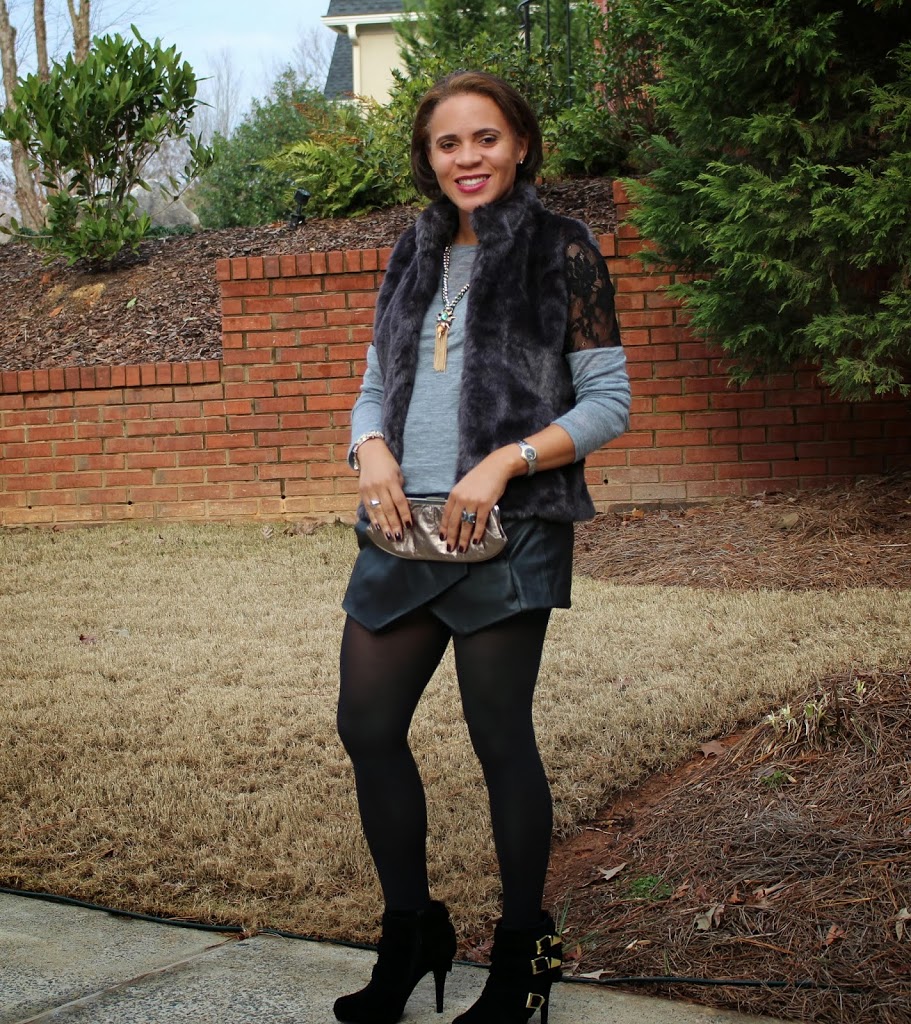 I hoe you had a great weekend!! They always fly by too quickly. I’ve talked about love of leather many times on the blog (here, here, here…. you get the picture), but this may be my favorite leather piece so far. I first discovered this skort in a black cotton/microfiber blend in Florence over the summer and it quickly became a summer go-to. I was so excited when I saw the leather version for fall! Since it is too cold for bare legs, I paired it with tights and boots and my favorite Zara sweater for dinner with friends.