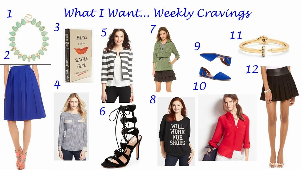 These weekly cravings are one of my favorite things to pull together, but they are definitely not great for my wallet! As you can tell, I’m looking forward to spring and trying to break out of my pants rut. This spring I want to try some of the more feminine looks coming out, like this amazing blue skirt. I would pair it with a lighter blue top for a monochromatic look or a beautiful green one for a great color-blocking look.