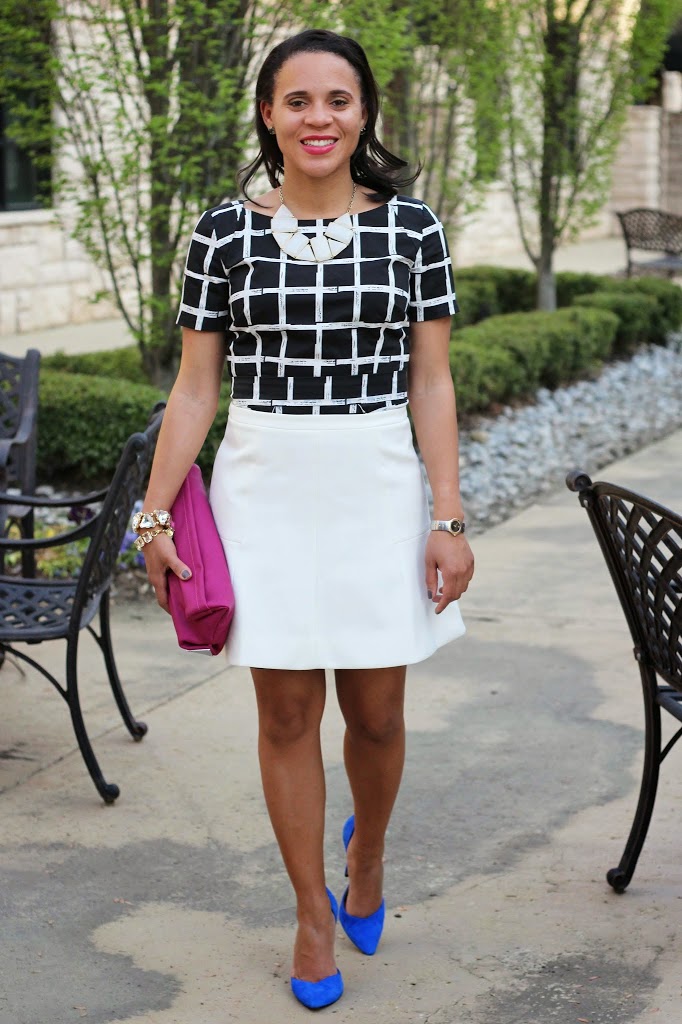 Dying over those cobalt shoes!!! SO GORGEOUS! Great look… Will definitely have to pair B and W with blue. I paired aqua with red over on my blog today. Would love to hear your thoughts!
