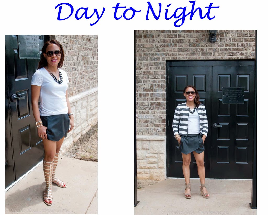Since I practically live in my car, I always have several pairs of shoes and a few blazers/scarfs in my car to dress up (or down) an outfit.  I’m so embarrassed when I have to give someone a ride, but the outfit options come in very handy when I’m running late and don’t have time to go home (90% of the time…).  It is amazing how throwing on a blazer and a pair of heels (or wedges in this case) can transform an outfit!