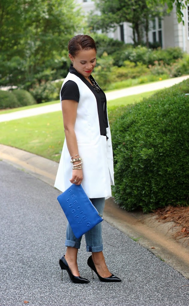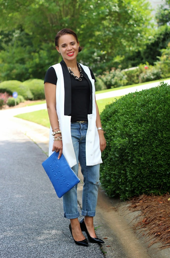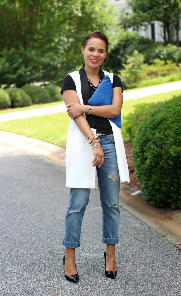 Love that vest with the jeans and clutch! Congratulations, you are one of our featured bloggers this week. Thanks for linking up!