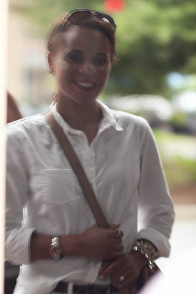 Nicole I love this clean, all-white look with the pops of camel. So clean and Summery.