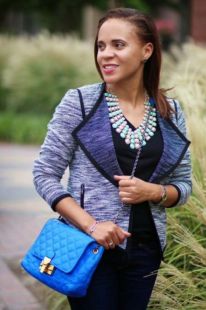 I love that blazer! So cute! That cobalt blue purse is amazing also!