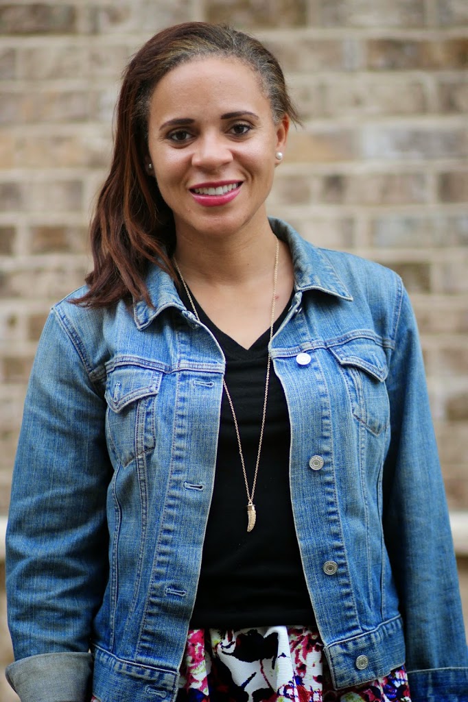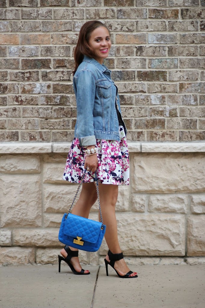Pretty outfit ! It isnt exactly fall quite yet in Charlotte, as you know I am another Southern Blogger. I really like that you took that gorgeous floral, and added the black, and the jean jacket over it. The heels really are lovely and dress it up! you look great, happy weekend