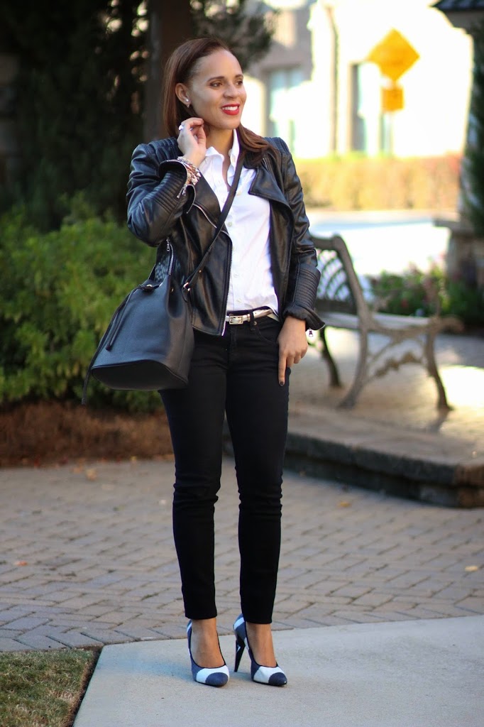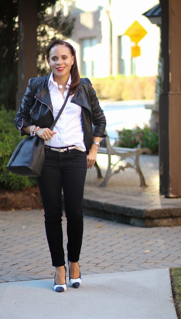 Yes for a great leather jacket making outfits instantly cool, and special. I love mine as well. Your black on white look is so classy. What an amazing price on it too! XOXO, Elif