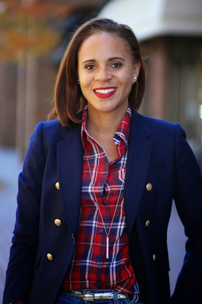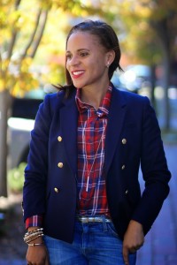 LOVING this plaid top + great navy blazer! You look awesome, Nicole!