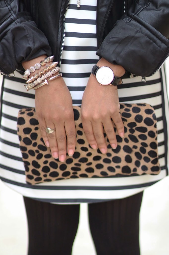 I’ve actually never tried layering a dress like that, but it is really cute! Love leopard and stripes mixed together.