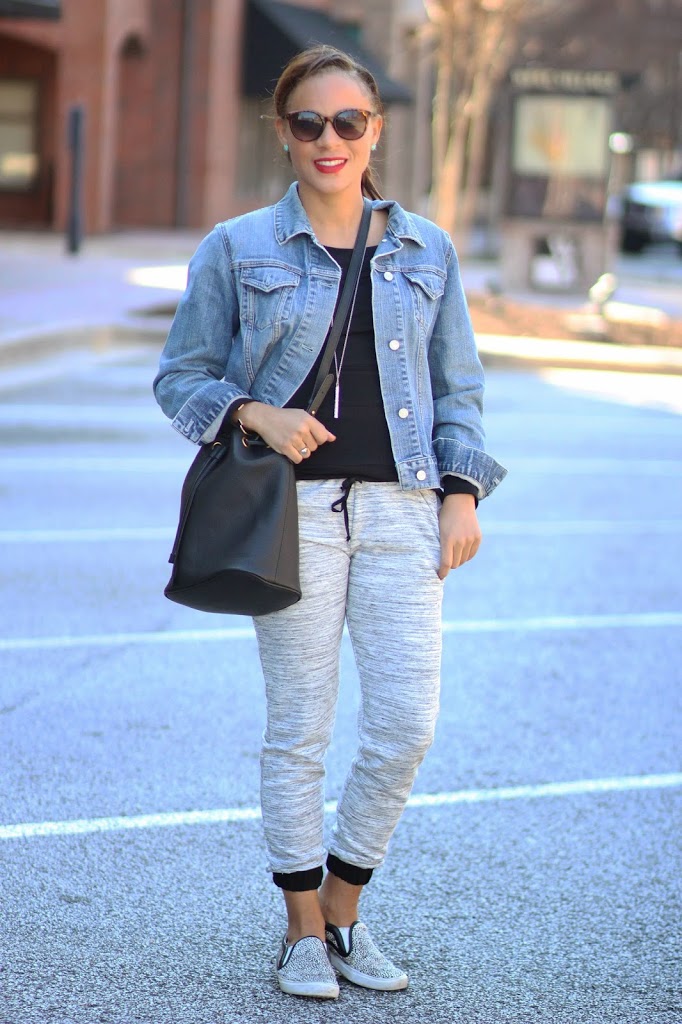 this is my kinda look!! I think I could live in joggers! I love the way you styled them with the denim jacket and those sneaks!