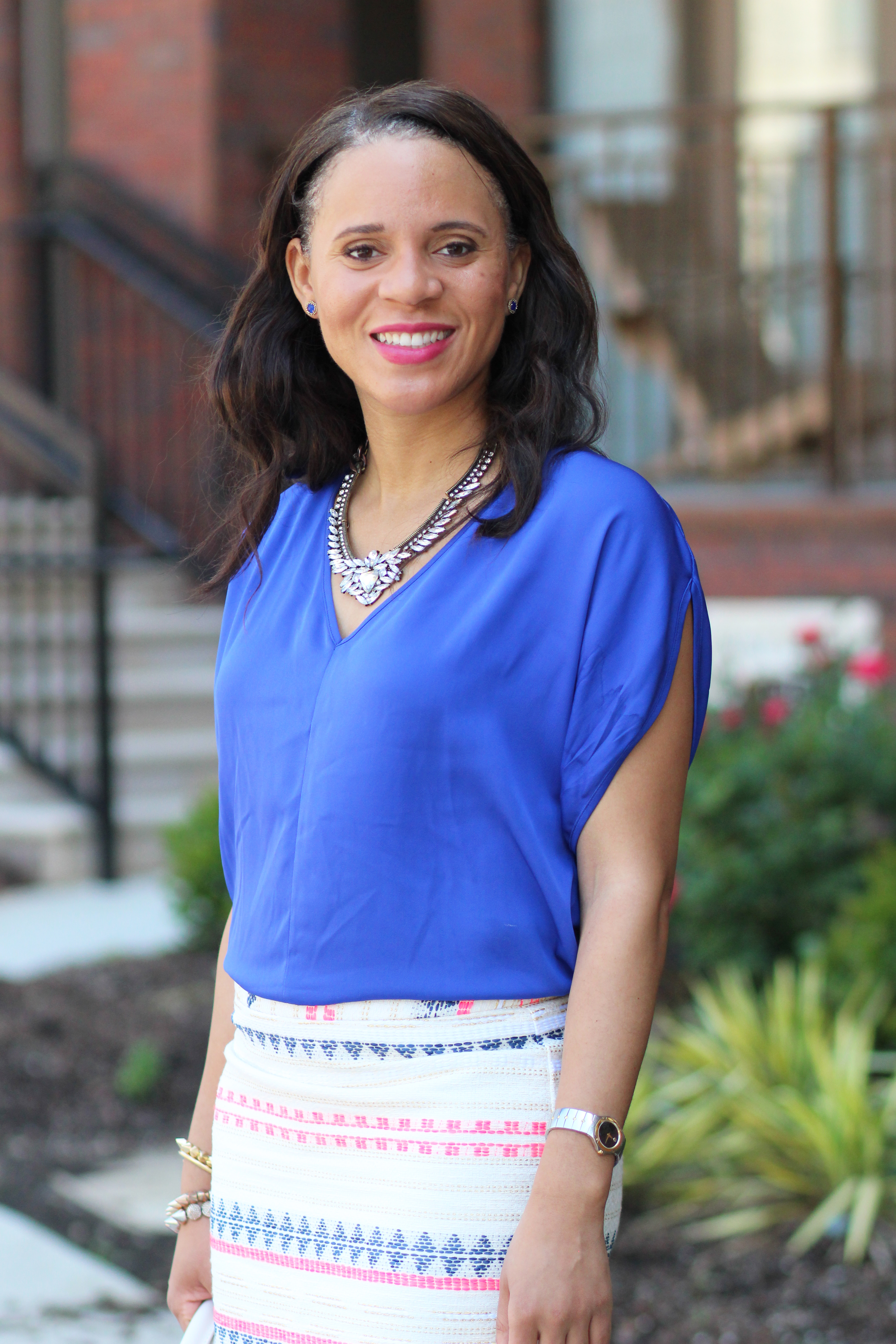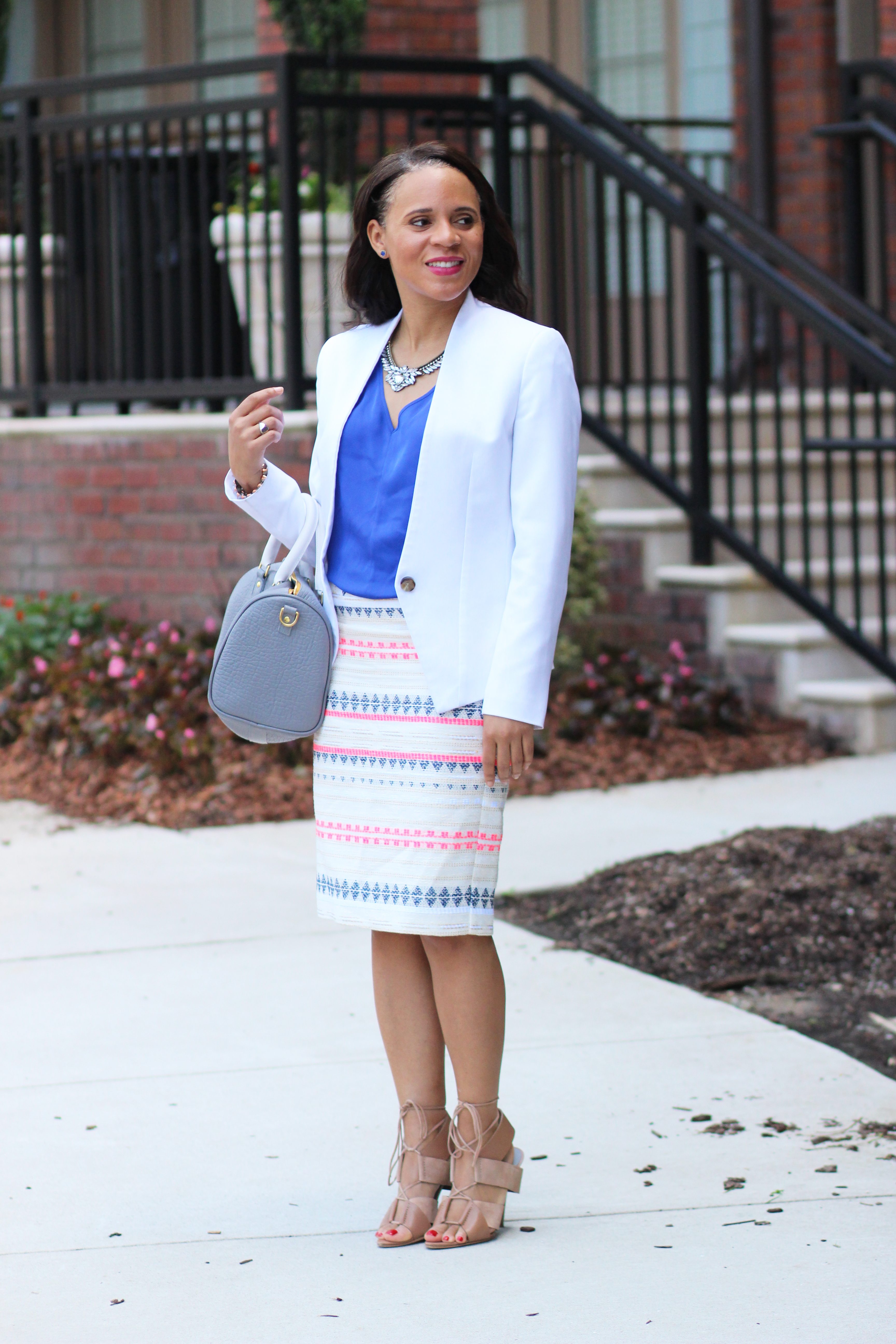 I paired this Trina Turk skirt with my go-to white blazer for a easy work look.  I can’t wait to wear it with a colorful cami and great heels for night out with friends.