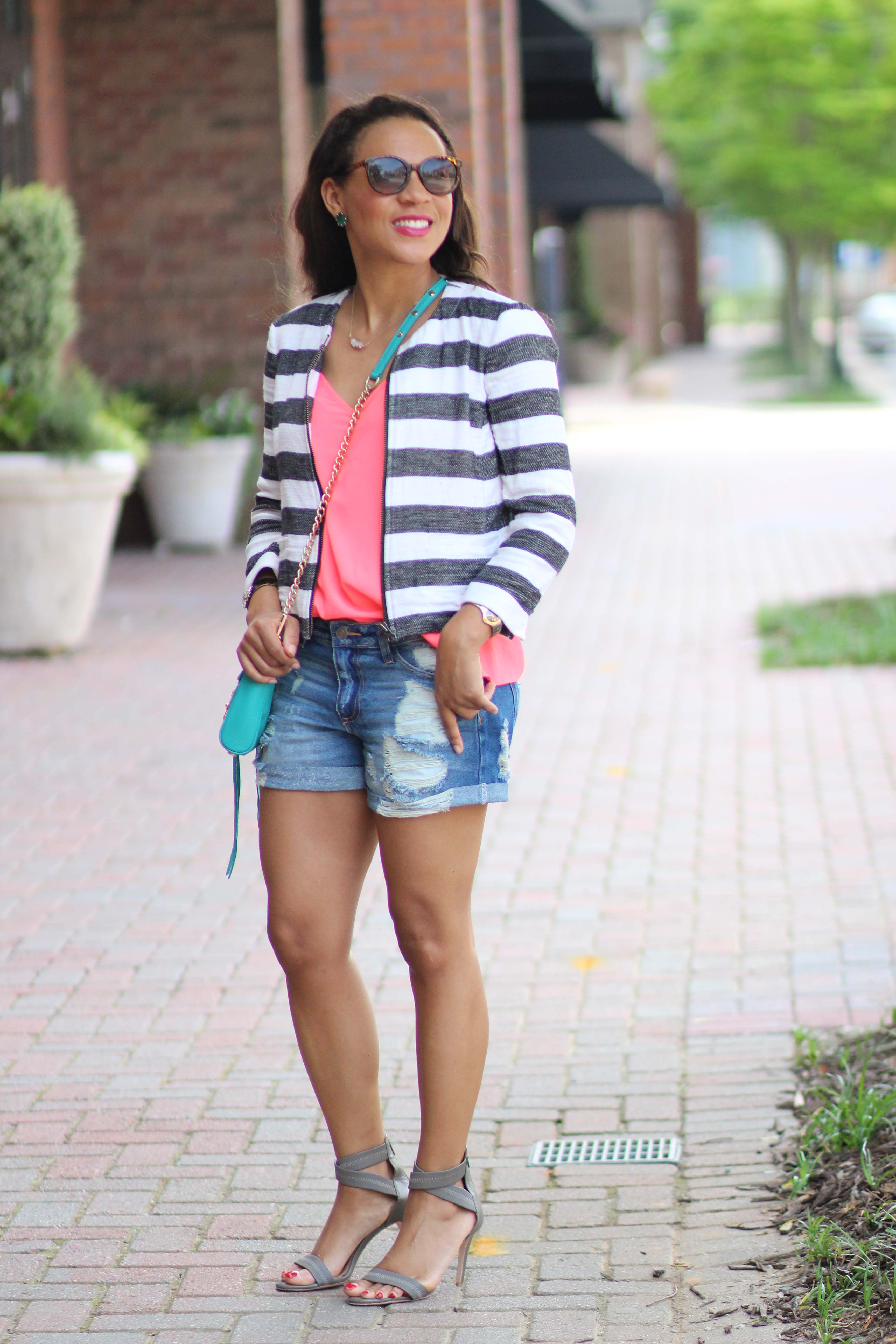 I’ve been living in these shorts this summer!  I really wanted the Rag & Bone distressed jean shorts, but couldn’t bring myself to spend that much money for a pair of shorts….  Thankfully, I found a very similar pair of distressed jean shorts for a fraction of the price at Fab’rik!  I’ve dressed them up here, but most weekends you can find me wearing them with a t-shirt and sandals on my morning coffee run.