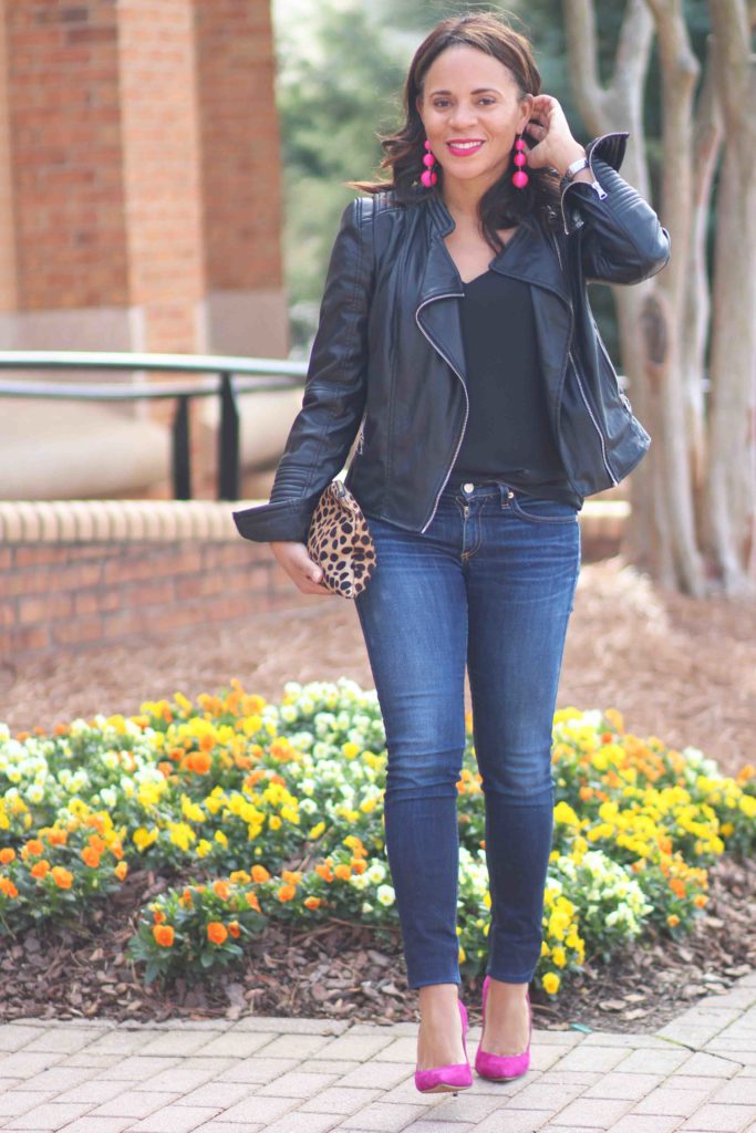 If you don’t want to go all out on pink and red next week, there are subtle ways to bring those colors into an outfit.  This outfit consists of my old standbys and I’ve added just a touch of pink in a nod to Valentine’s Day.   These earrings are one of my favorite pairs and come in quite a few different colors.  They are are the perfect pop for any outfit and I couldn’t pass up the opportunity wear my pink pumps!