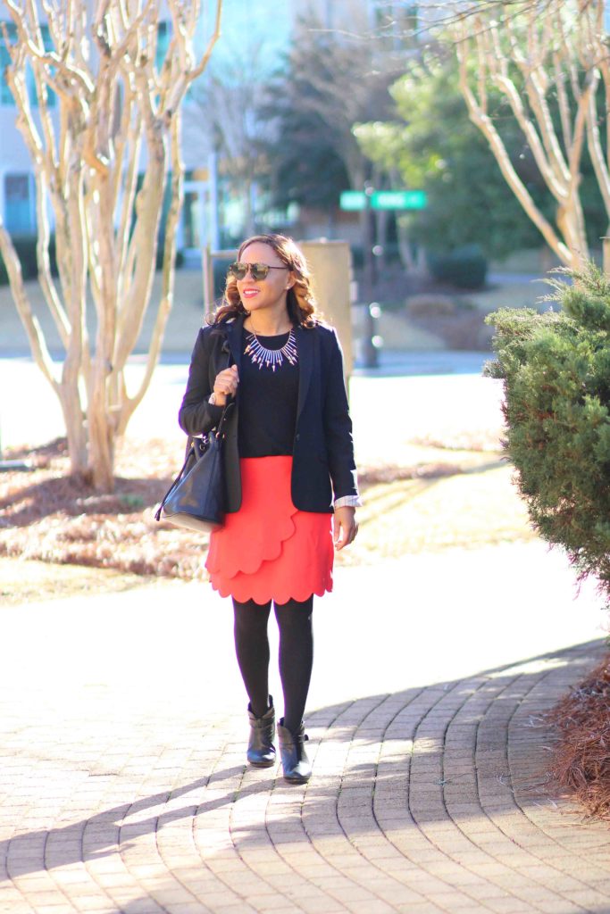 I saw this skirt when my friend hosted an event at the new Draper James store in Atlanta. As soon as I saw it, I knew that it would be the perfect pop of color heading into spring. The style is very similar to a Victoria Beckham for Target skirt that I missed out on, but the color of this one is more coral than orange. That makes it easier to wear in my opinion.