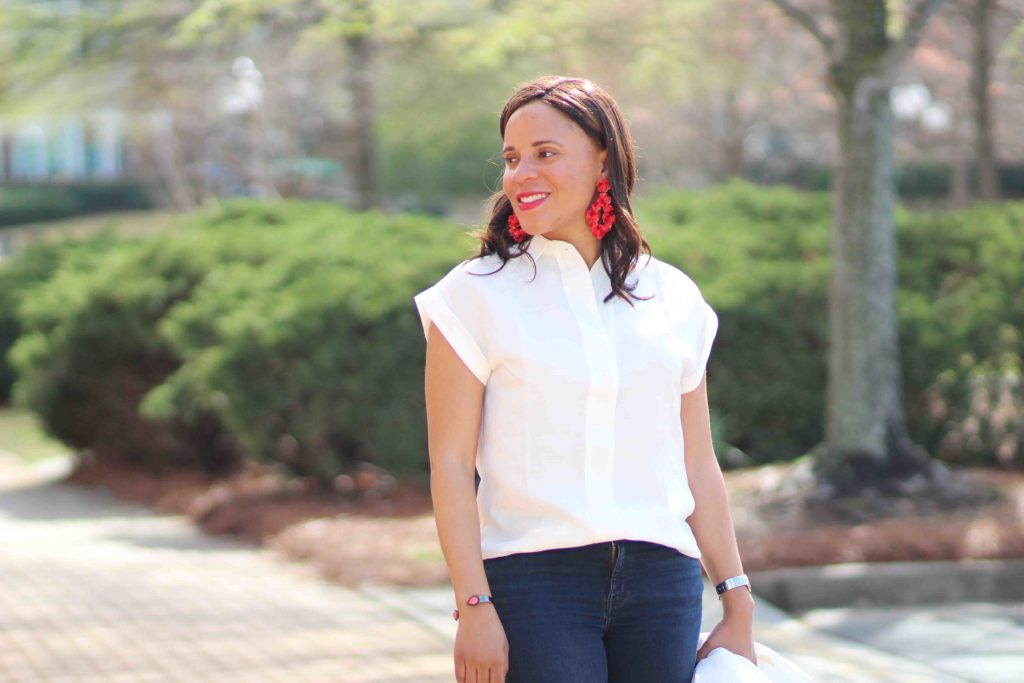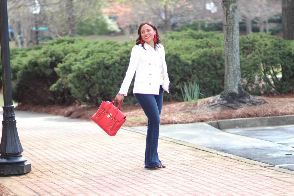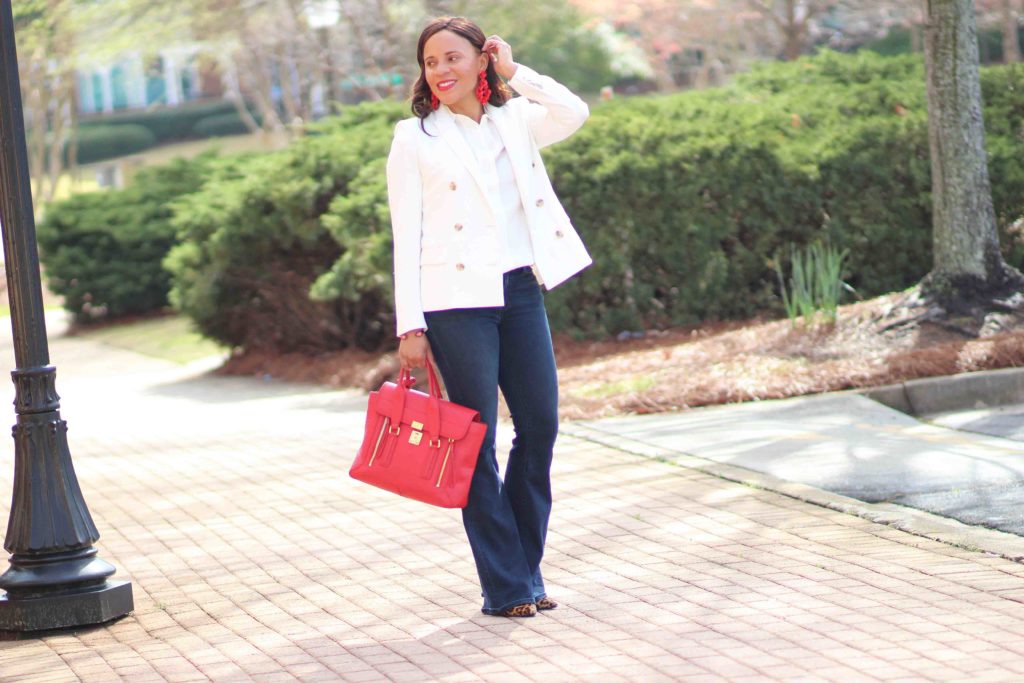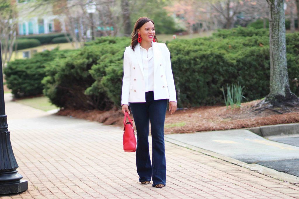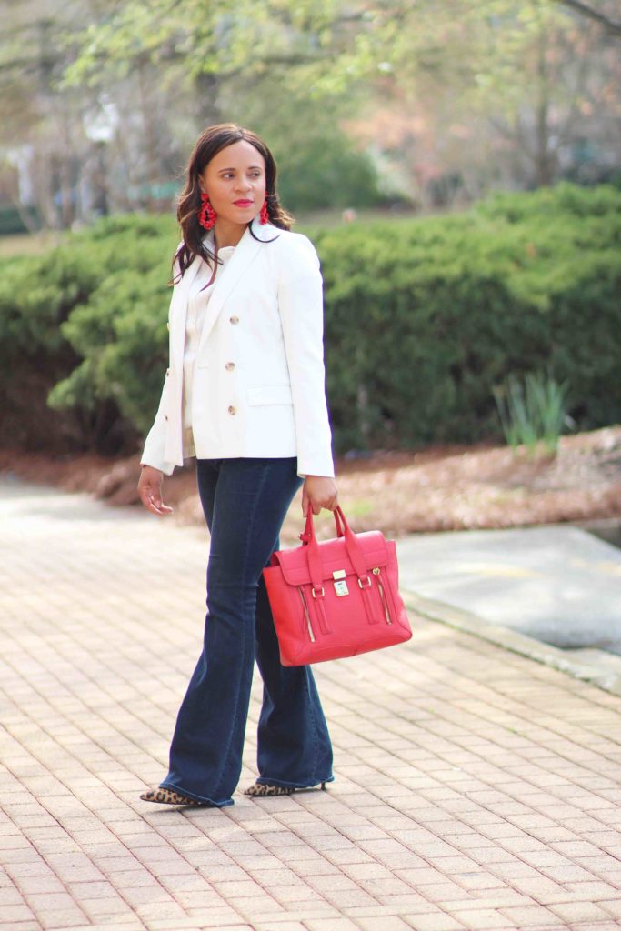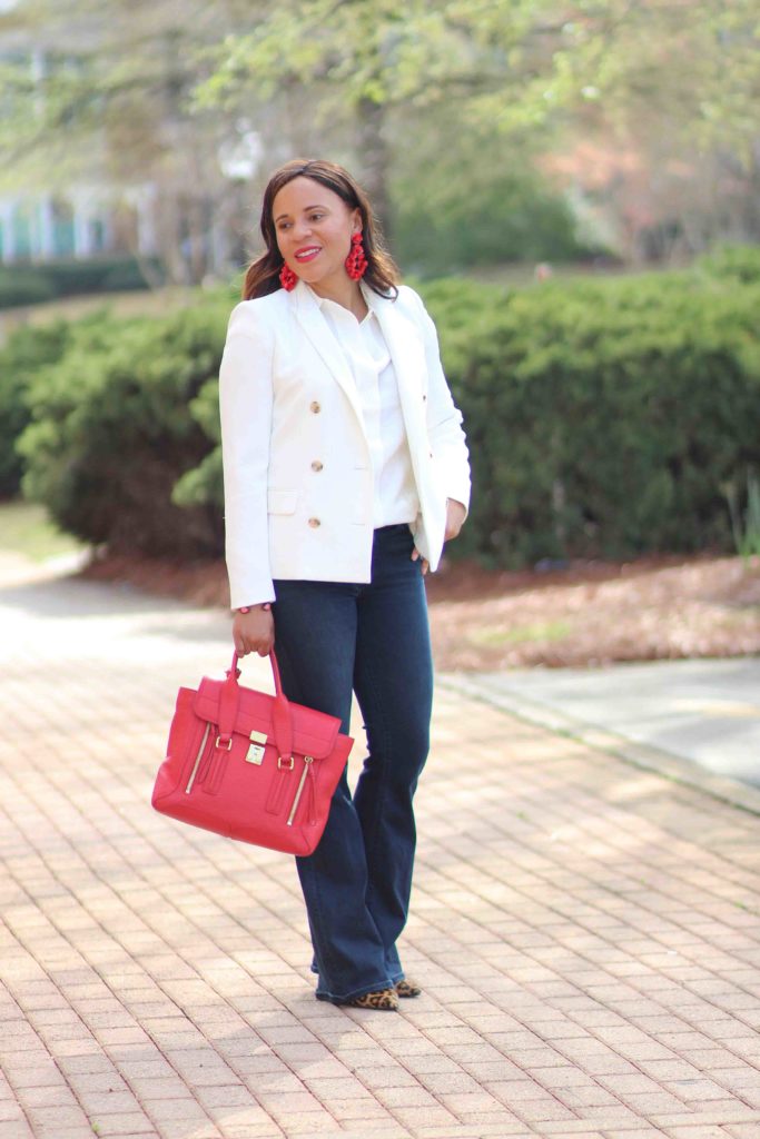 Blazer: J. Crew, similar / Top: J. Crew / Jeans: Treasure & Bond, similar / Shoes: Sam Edelman / Purse: 3.1. Phillip Lim / Earrings: J. Crew